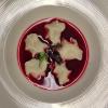 Na szpinakowej klusce śląskiej, z modrą kapustą, winnym jabłkiem rajskim oraz sosem...