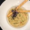 Spaghetti Aglio e Olio z czosnkiem, papryczką Piri-Piri, parmezanem, posypane pietruszką.