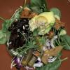 W sosie kurkowym, podane z kluseczkami i mixem sałat z sosem vinegrett